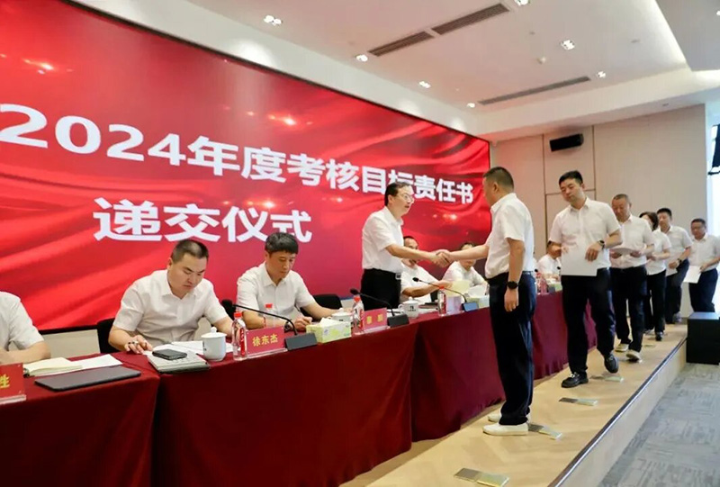 ??? 會上,集團新選聘到位的9家二級經營單位主要負責人向集團黨委書記、董事長胡磊遞交2024年度考核目標責任書。