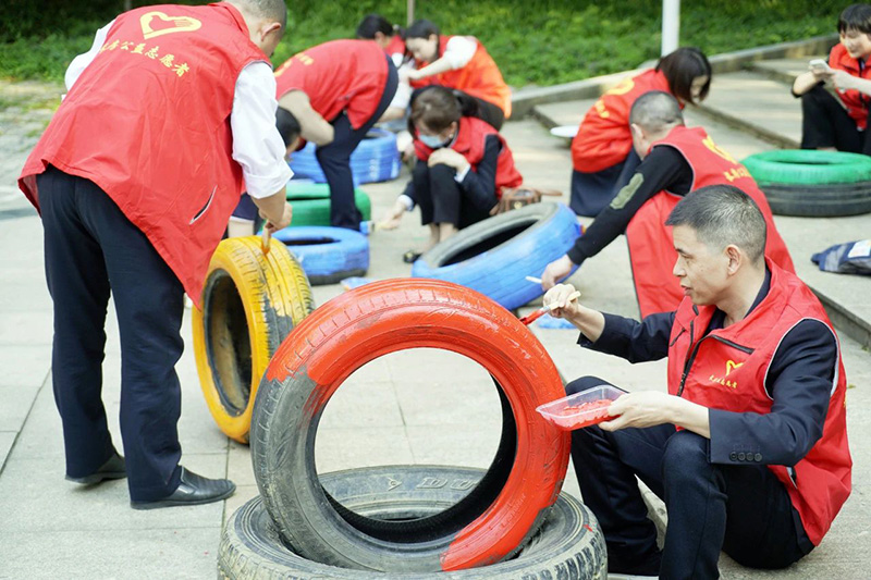 長房·時代城小區輪胎涂裝裝點小區環境