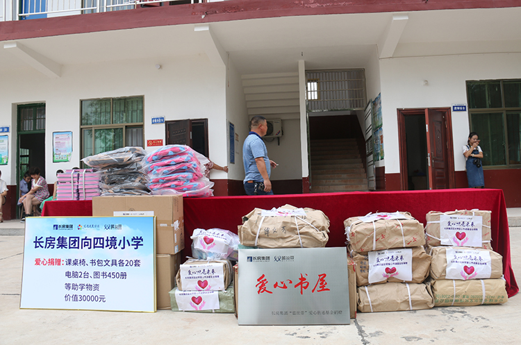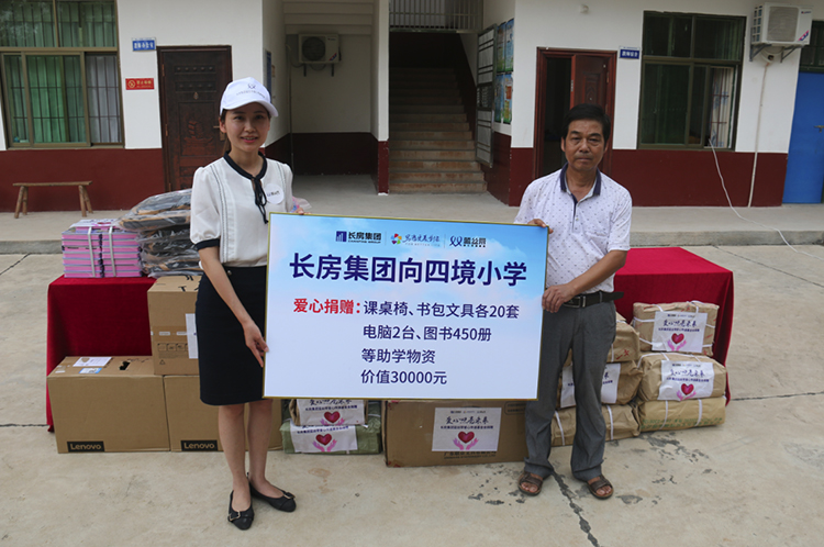 愛心傳遞,夢想飛揚。2018年8月23日,在長沙市青少年發展基金會的指導下,長房集團“藍絲帶”愛心傳遞基金活動走進湘潭縣青山橋鎮四境小學,本次活動由湘潭市時代置地有限公司協辦,為貧困學生們帶來了價值30000元的愛心課桌椅、文具和圖書等愛心助學物資和一場生動活潑的兒童成長心理輔導課程。湘潭市住房和城鄉建設局領導,長房集團黨群工作部負責人及湘潭市時代置地有限公司領導等出席捐贈儀式。